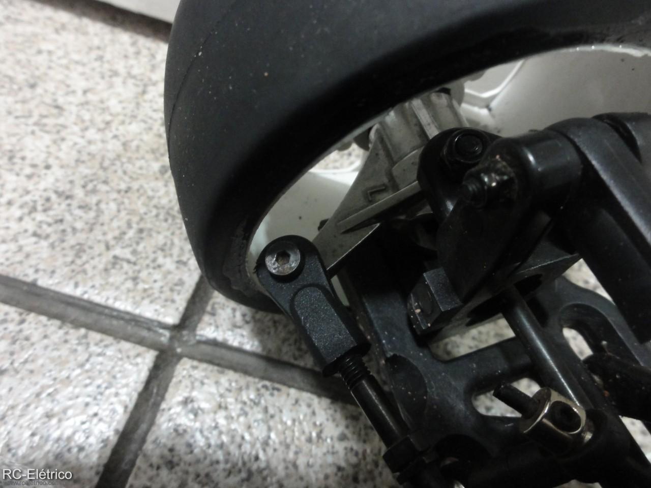 PITOCCAO, eu uso alpha rc Brushless Hard, e ainda sobra alguns milimetros até que toque naquele bracinho que faz as rodas virarem...... Que estranho !! Qual o modelo da sua roda? Ate postei uma foto de como ficou, se nao me engano esta na pagina 37 ou 38.